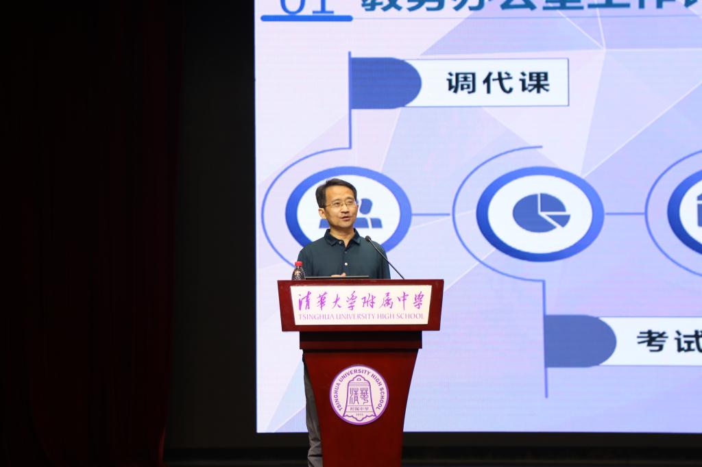 首先,由校长方妍介绍今年新入职的教师并代表学校表示欢迎。随后作题为《凝心聚力 务实笃行——全力开创清华附中事业发展新局面》的报告,报告内容从当前的教育形势和面临的挑战、学校发展的方向和重点、需要的保障条件以及亟待解决的问题四个方面展开。