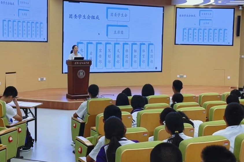 新起点、新征程。8月31日上午,2024-2025年度第一学期学生干部培训会分别在华茂楼106和208教室举办。学生发展中心刘志杰老师、团委学生会付帅老师、初2312班班主任张梦甜老师、初2316班班主任乌吉丹老师出席初中会场,团委书记于洺老师、学生会指导老师娄赛赛老师和学生发展中心王鹏老师出席高中会场,初高中各班班长、团支书以及来自清华附中大兴学校的老师和同学们近500人参与此次培训。