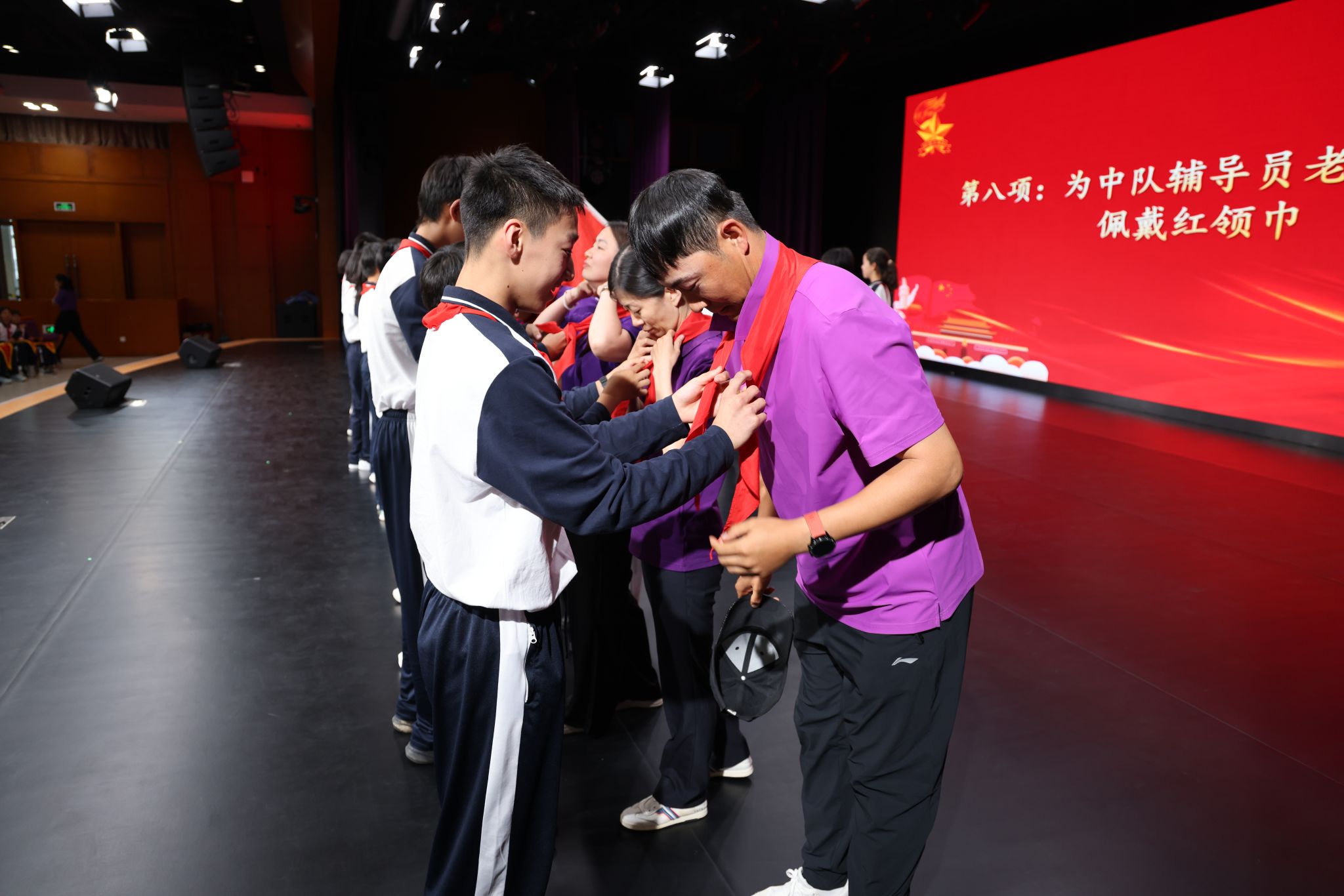 为中队辅导员老师佩戴红领巾