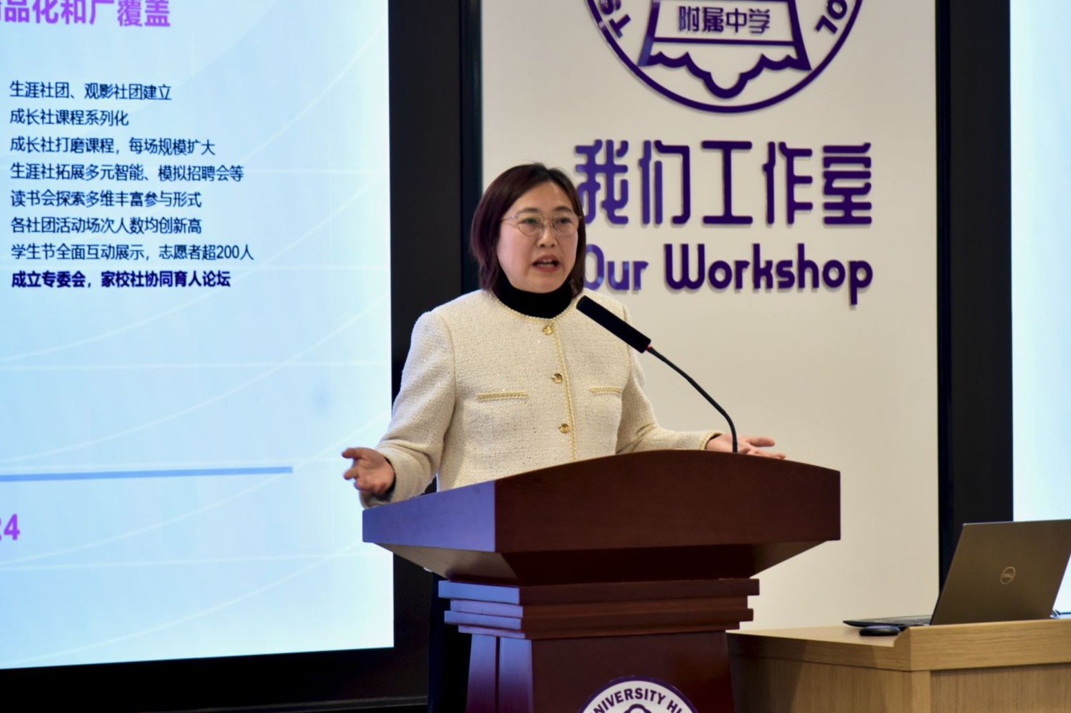 最后,张苏副校长发表寄语,对家委会的努力与成就表示充分肯定,并寄望新一届家委会在“同频同行”的理念下继续前行。她指出,家校共育工作是学校“当好人民教育新示范,办好强国教育新样板”的重要组成部分,应坚持“时代为志、育人为本、行动为要”,让共识落地生根,共同为学生的全面发展和学校的教育创新贡献力量。