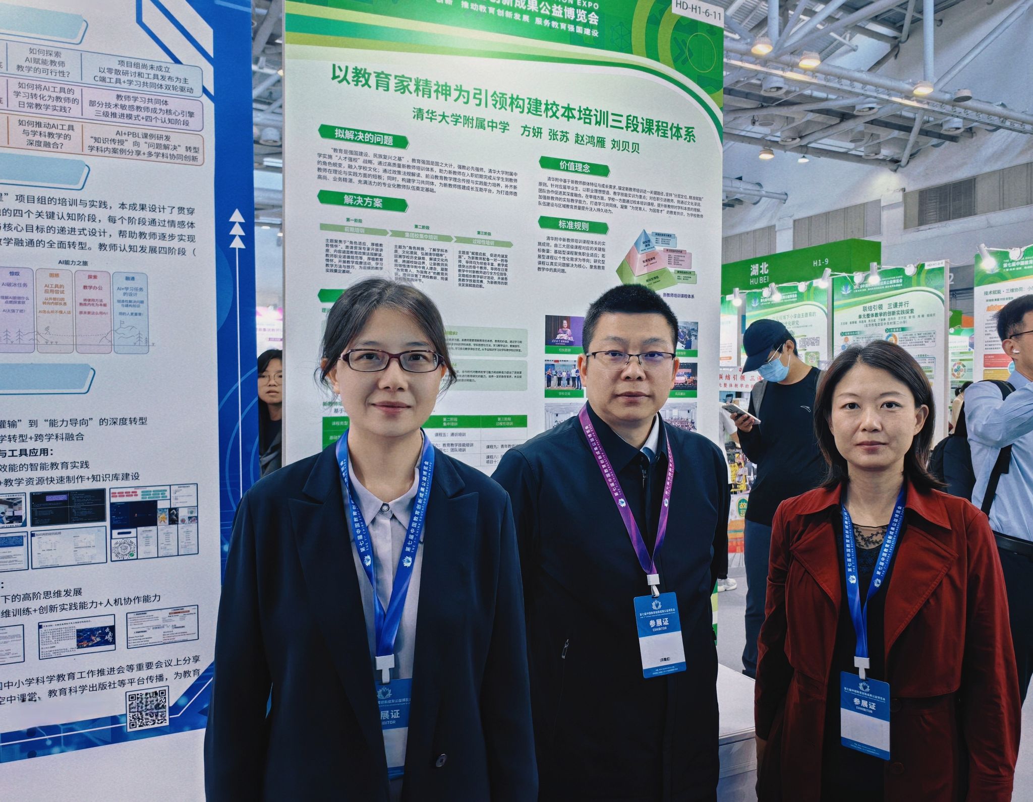 2025年11月15-17日,第七届中国教育创新成果公益博览会在广东省珠海国际会展中心举行。本次教博会以“汇聚·共享·创新”为主题,推动教育创新发展,服务教育强国建设。活动由北京师范大学主办,面向全国征集基础教育领域的创新成果,清华大学附属中学项目成果《以教育家精神引领构建校本培训三段课程体系》受邀参加展示。潘天俊副书记、人力资源中心刘贝贝主任、人力资源中心陈敏老师参加活动。