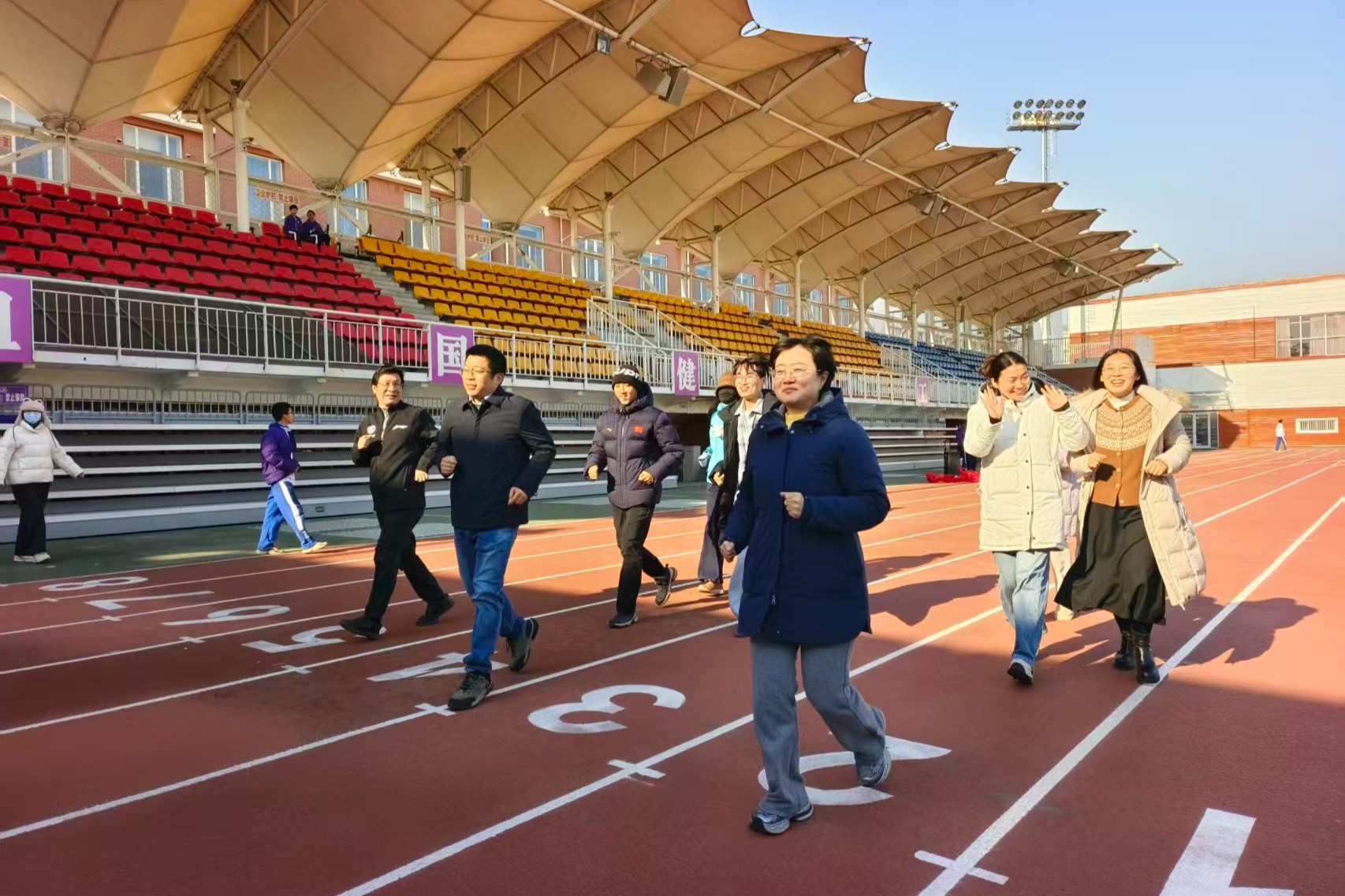 活动现场,工会精心挑选的励志音乐激昂奏响,为冬日校园注入满满活力。教职工们提前有序完成签到打卡,随后以整齐的队列沿操场慢跑前行。凛冽寒风中,大家精神抖擞、步伐稳健,一张张洋溢着笑容的脸庞,展现出附中教职工积极向上的精神风貌。跑步过程中,同事们相互鼓劲、并肩前行,操场之上既有运动的活力,更有互助的温情。
