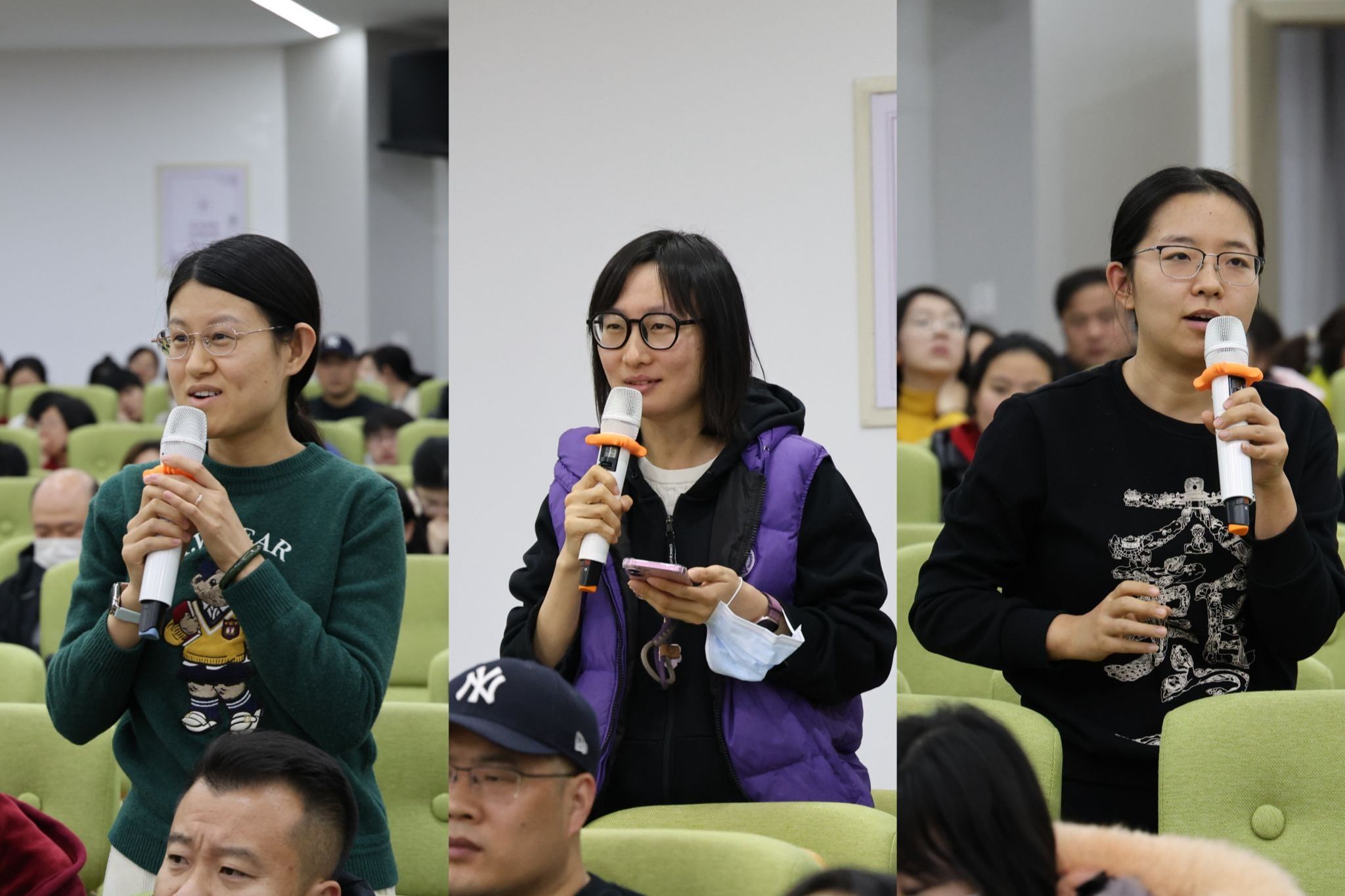 武心丹(左)、黎颖(中)、吴梦涵(右)三位老师提问