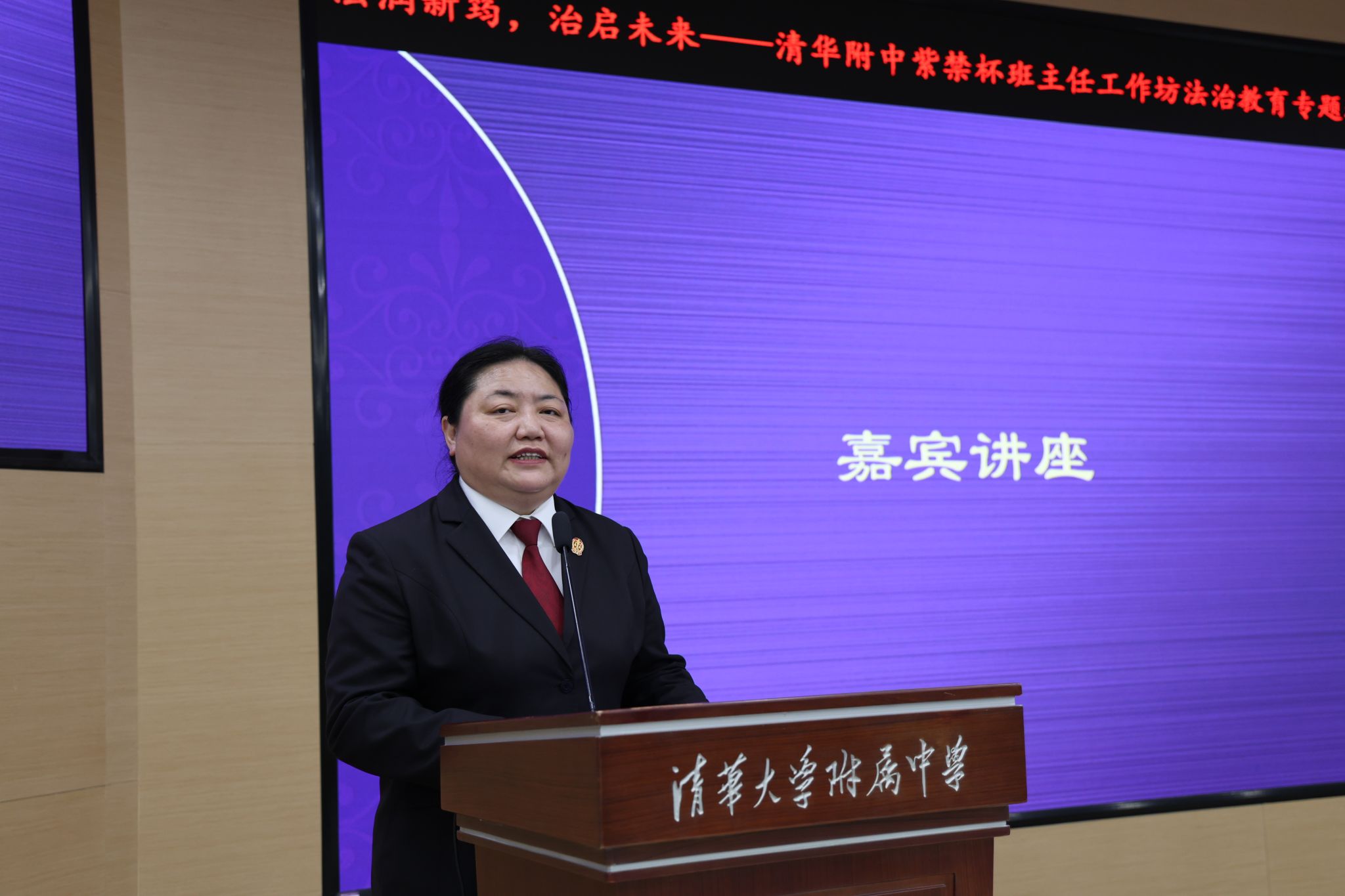 为进一步筑牢校园法治防线,提升教师法治教育能力与校园安全管理水平,12月11日下午,清华附中以“法润新筠,治启未来”为主题开展法治教育专题培训,覆盖全体一线教师。培训特邀我校法治副校长、北京市第三中级人民法院未成年人综合事务审判庭副庭长刘洋法官担任主讲嘉宾,方妍校长、曹海翔书记及全体校领导班子和全体一线教师参与会议,此次会议由学生发展中心副主任李冰清主持。
