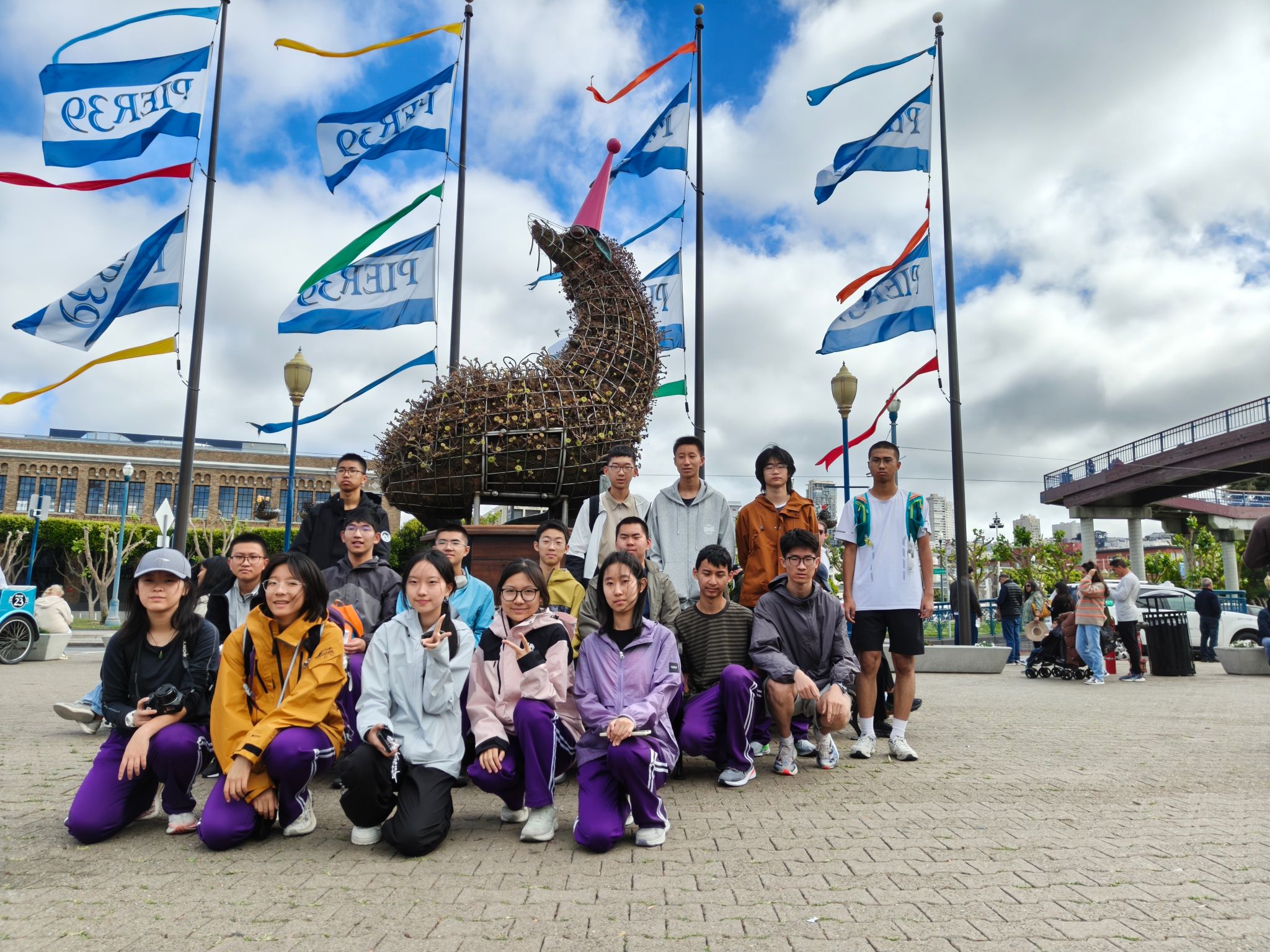旅程伊始,同学们首先抵达了被誉为“美国西海岸明珠” 的旧金山。站在金门大桥下,咸湿的海风裹挟着城市的活力扑面而来,大家举着相机记录这座兼具历史底蕴与现代气息的城市风貌,从渔人码头的热闹市集到九曲花街的斑斓景致,初步感受着异国他乡的独特魅力。