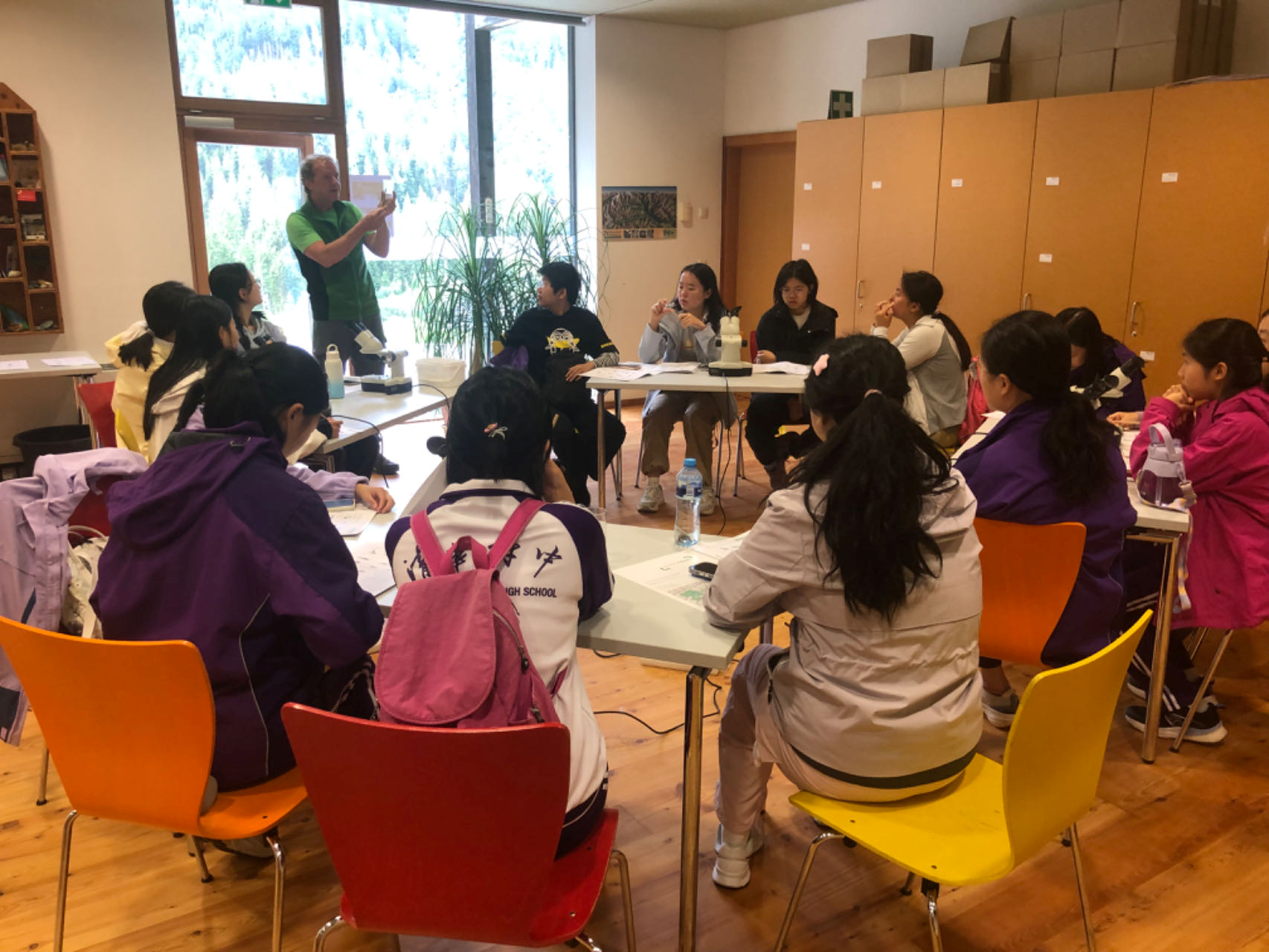 离开维也纳,研学团来到奥地利高地陶恩国家公园,同学们立时走进了一座无比巨大而又美轮美奂的“自然课堂”。大钟山徒步途中,山间碎石路引导我们向上攀登。峡谷中溪流潺潺,俯身观察袅娜的水草;密林里鸟声清脆,停下脚步,顺着老师的指引寻找野生动植物的踪迹。同学们用手机拍下了许多珍贵美好的瞬间。