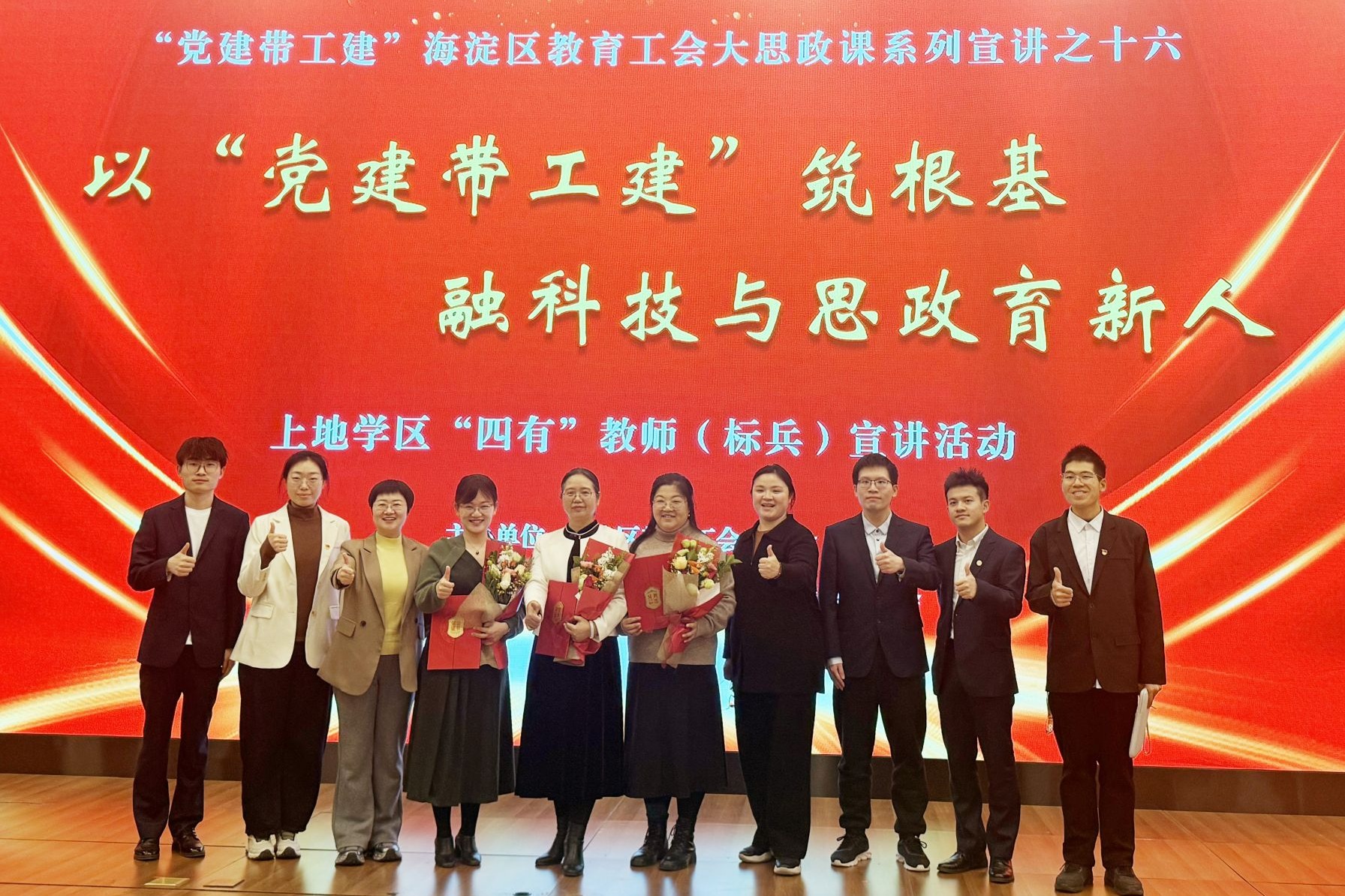 为深入推进立德树人根本任务,助力海淀建设教育强国首善先行区,近日,上地学区“四有”教师宣讲活动顺利举办。唐中云、张娜、熊学勤三位教师登台宣讲,学校工会副主席任星阳、学生发展中心副主任李冰清、教工团委书记张祎憧和四位教工团教师代表共同到场聆听学习。