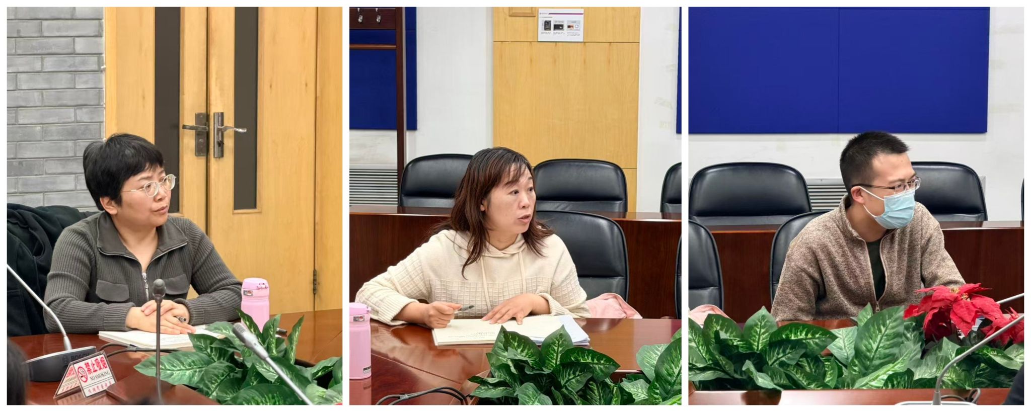 化学教研组长白建娥(左)、生物教研组长刘健(中)、物理教研组长蒋炜波(右)发言