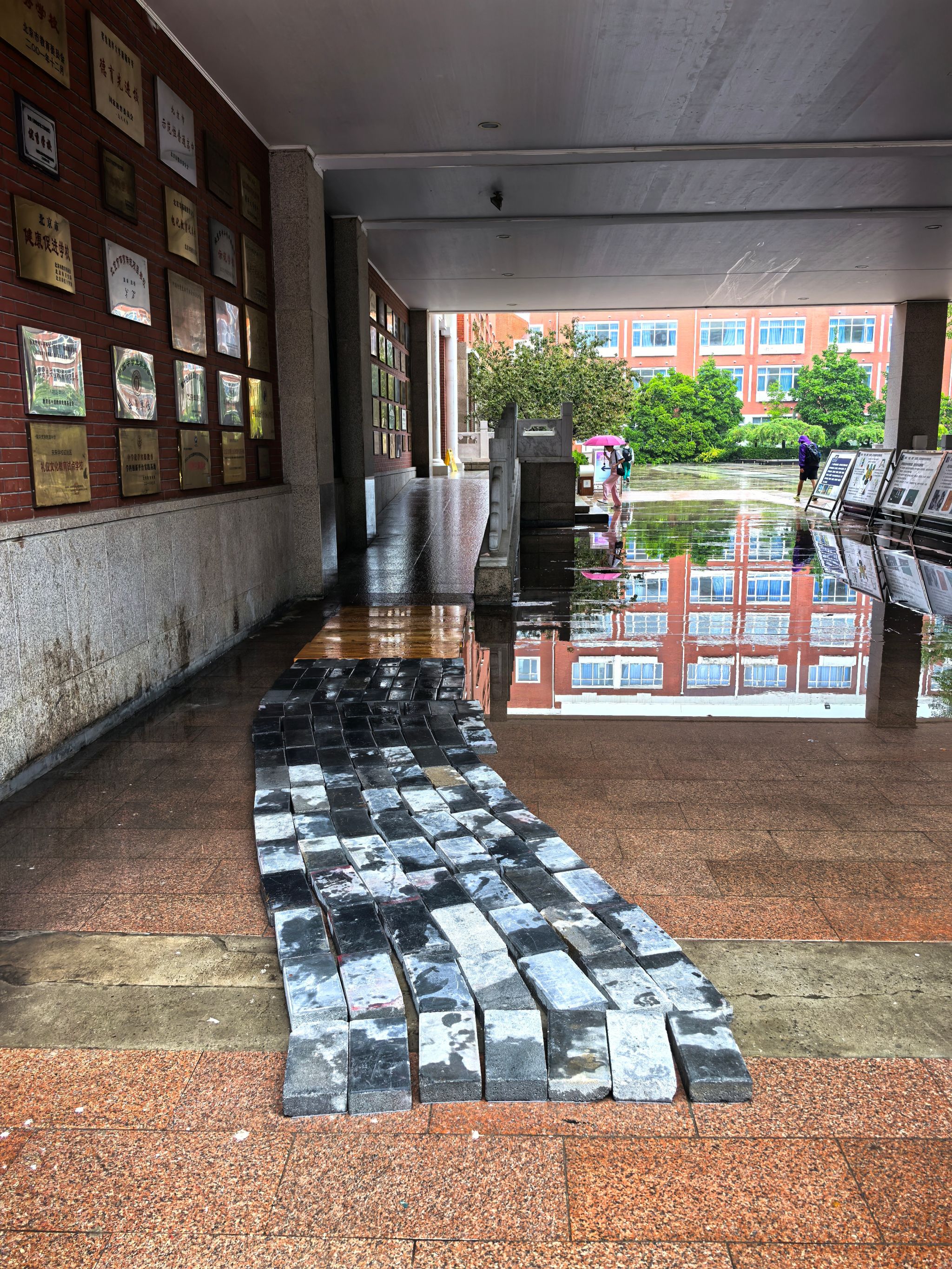 清华附中校园地势低洼,每逢雨季,不仅校内积水难以外排,市政污水还会倒灌涌入,校内光阴广场更是沦为积水重灾区,“雨季看海” 成为长期困扰全校师生的一大痛点。