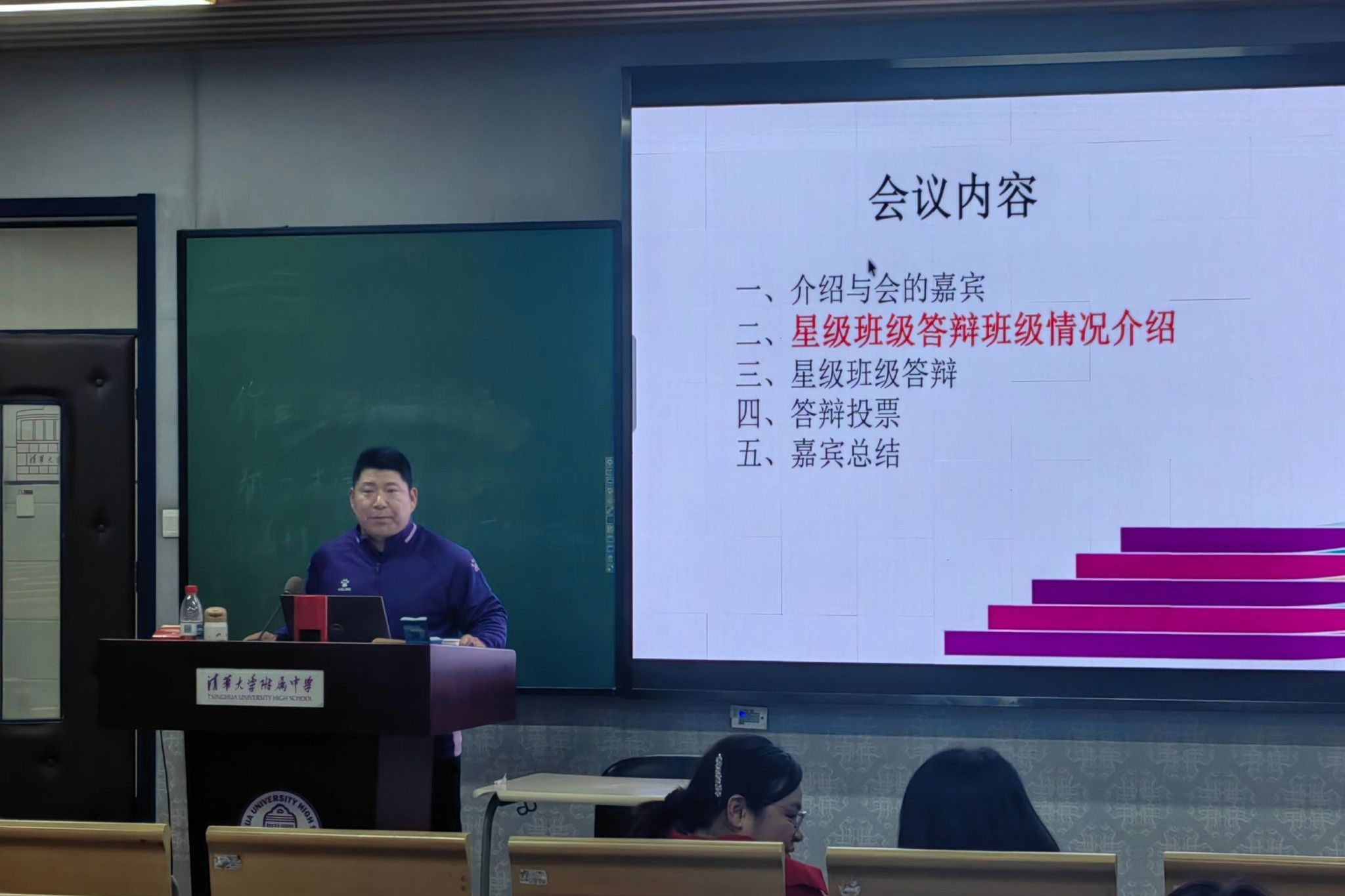 12月26日中午,清华附中初中星级班级答辩活动在华茂楼B206举行。学生发展中心副主任李冰清、初23学部副主任周小玲及初2312班班主任张梦甜受邀担任嘉宾,各班与会代表齐聚现场,共同见证班级建设成果的展示与交流。