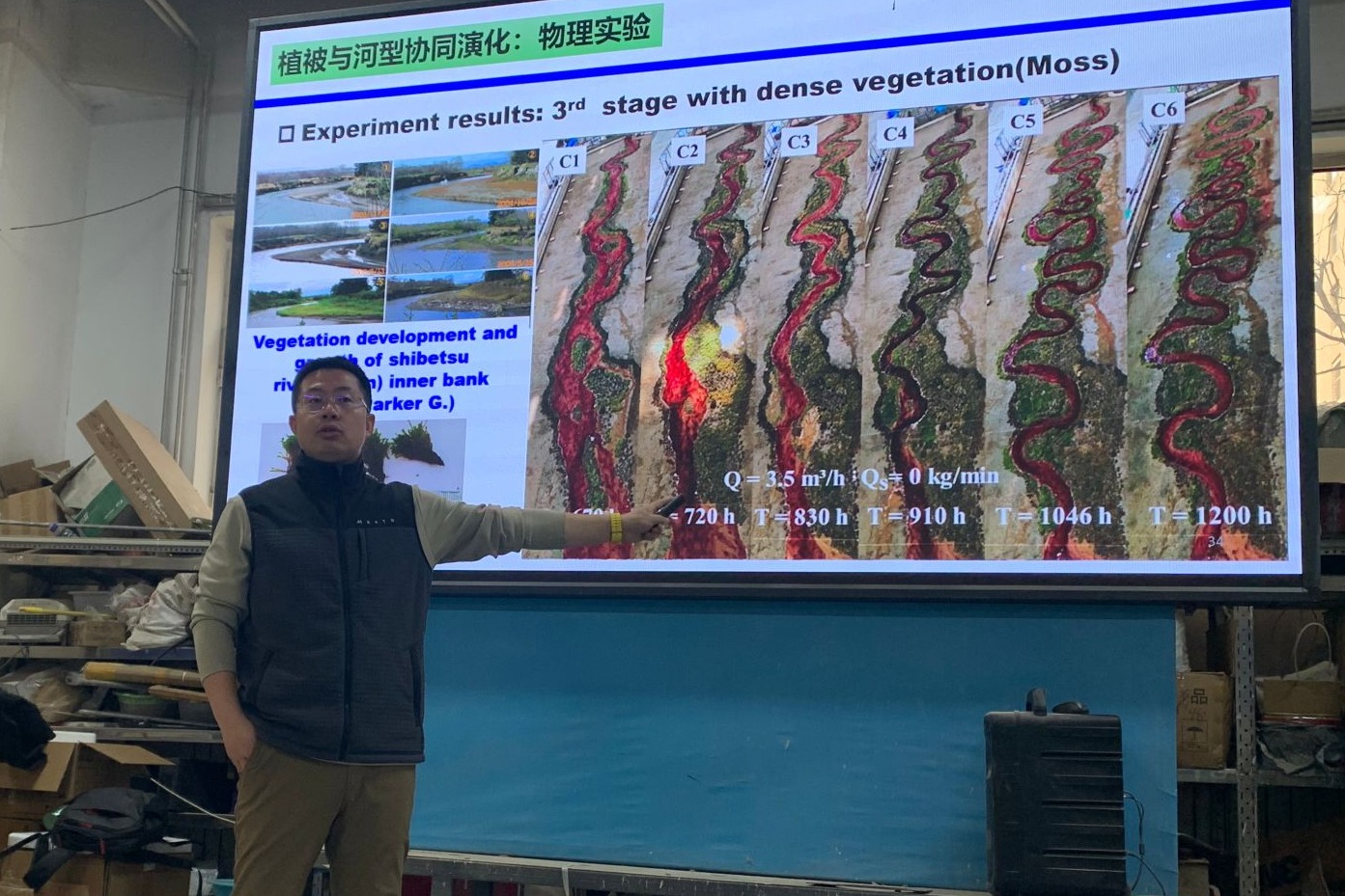 朱老师为同学们介绍植被与河流的协同演化实验
