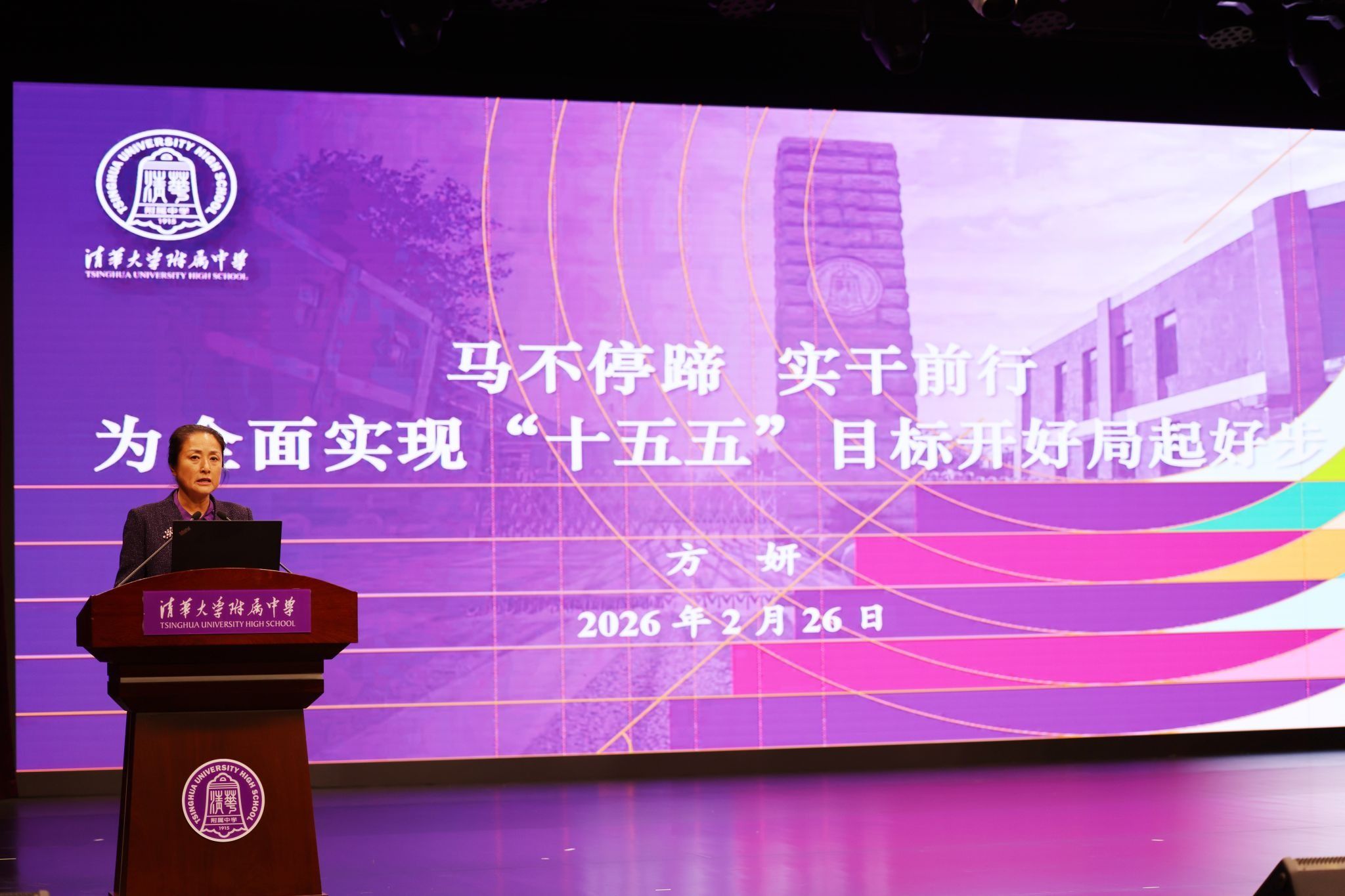 2月26日,清华附中召开新学期开学教职工大会。方妍校长以《马不停蹄 实干前行 为全面实现“十五五”目标开好局起好步》为主题开讲新学期第一课。全体教职工在大会中明方向凝共识、学新知启新程。