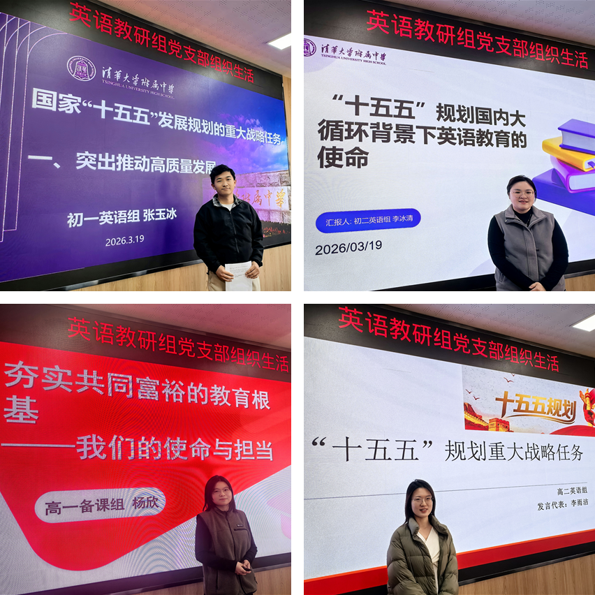 此次组织生活将国家发展战略学习与英语学科教学实践紧密结合,让支部全体党员教师进一步明晰了自身的育人使命与时代担当。英语组全体教师将继续立足英语学科讲台,深学细悟、履职践责,将国家“十五五”规划纲要的各项要求润物无声地融入课堂教学与学生培养的全过程,以课堂革命、教学创新推动学科高质量发展,为培育担当民族复兴大任的时代新人贡献力量。