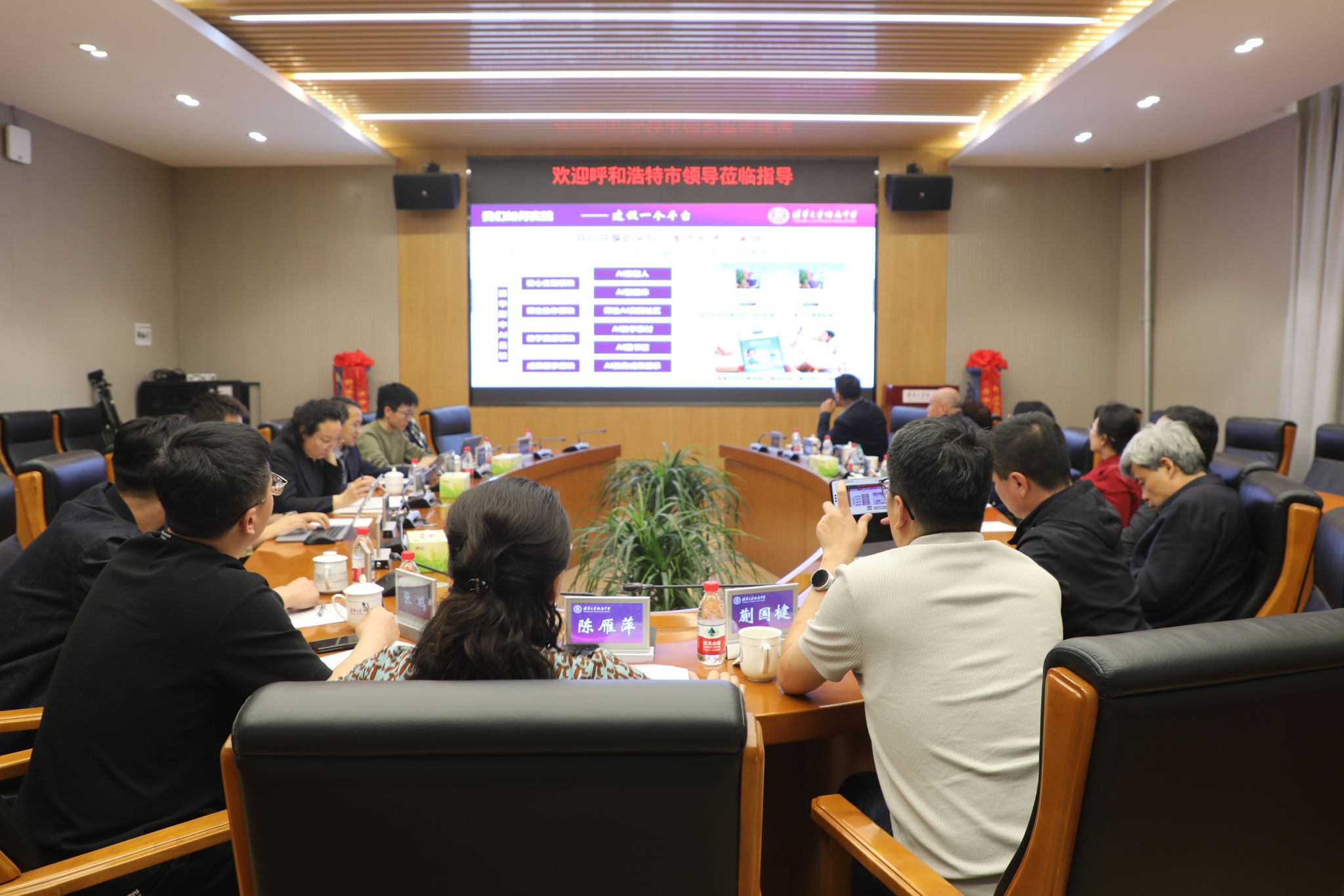 4月23日,内蒙古呼和浩特市教育局局长何妍率领由市属、区属中小学校长及教育管理干部组成的交流团,赴清华附中开展实地调研与专题交流活动。清华附中副校长徐文兵、张苏,资源保障中心副主任常昊男、科技办公室主任谭洪政等热情接待。双方围绕学校发展、办学理念、科技教育、人工智能平台建设等议题,开展全方位、深层次交流研讨。