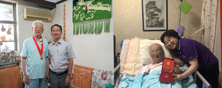 清华附中共有27名老党员荣获纪念章。“七一”前夕,附中党委委员和党员领导干部分别上门慰问不能到现场参加仪式的老党员,并将纪念章颁发给老党员。领到纪念章后老党员们激动不已,当场佩戴纪念章留影。93岁高龄的离退休干部张秀真老师认真地阅读纪念章的寓意说明。还有几位卧床的老同志也将纪念章紧紧得握在手中,仔细端详。卧床多年的老党员孙振民老师在收到纪念章后,特别让家属记下心声:“作为一名老党员,我感觉非常光荣和自豪,我虽然年迈身残,但共产党人的初心不改。感谢党多年的培养,感谢国家关照,让我过上老有所养,老有所乐的幸福生活。衷心祝愿我们的党和国家更加繁荣昌盛,国泰民安。”