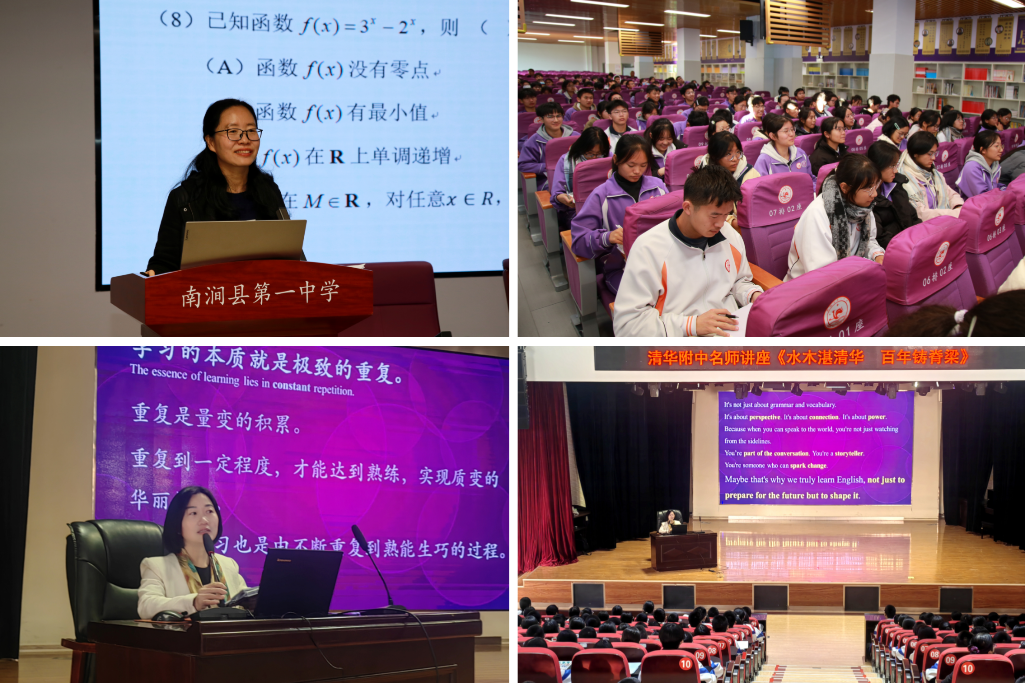 为精准助力南涧县课堂教学质量、启迪学生学科思维,清华附中上地学校数学教师、高中年级组长徐琨,英语教师、初中年级组长刘华英分别走进南涧一中、南涧镇中学,为学生们带来了两场内容翔实、形式生动的学科专题讲座。讲座紧扣学科核心素养与学习方法优化,通过案例解析、互动交流等方式,帮助学生夯实知识基础、提升关键能力,引导他们明确学业规划、树立成才志向,为当地学子成长注入强劲动力。