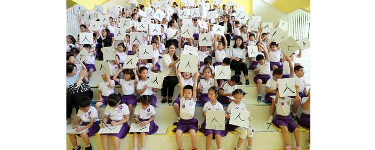 “开笔启慧”学写人字,人字,一撇写品德,一捺写才能。德才要兼备。人字,一撇写身体,一捺写心灵。身心需两健。