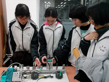 学生在传感器与检测实验室亲手做实验 在机器人实验室里学生们被深深吸引