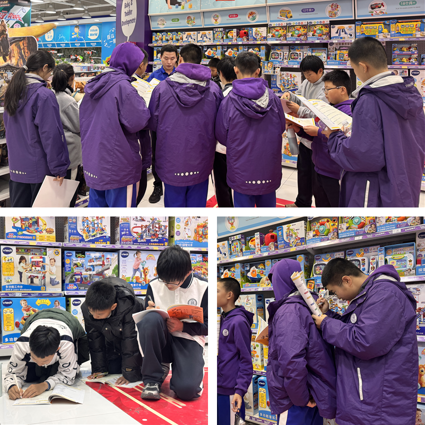 同学们在“玩具反斗城”门店进行实地调研与小组任务分析