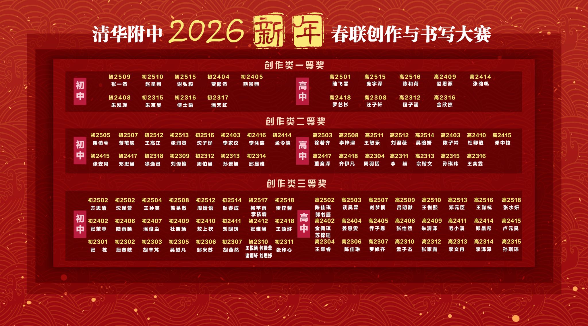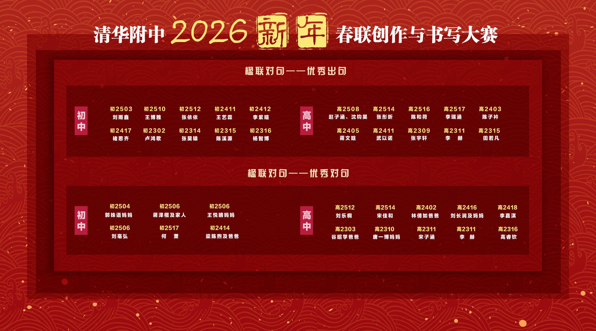 行健不息承雅训,中流击楫向云程——清华附中举办2026年新年春联创作与书写大赛