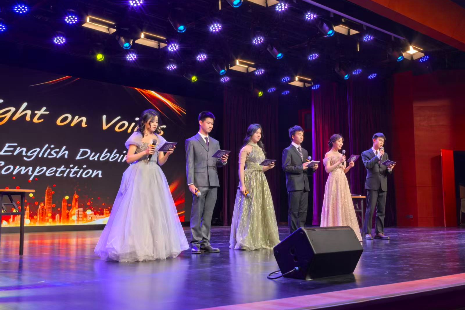 比赛过程中,同学们用声音赋予角色生命,呈现了一场创意与实力兼具的视听盛宴,报告厅内掌声如潮、喝彩不绝。尽管并非所有队伍都能登台展演,但每一位同学在备赛过程中都收获了属于自己的成长——口语表达更自信,团队配合更顺畅。