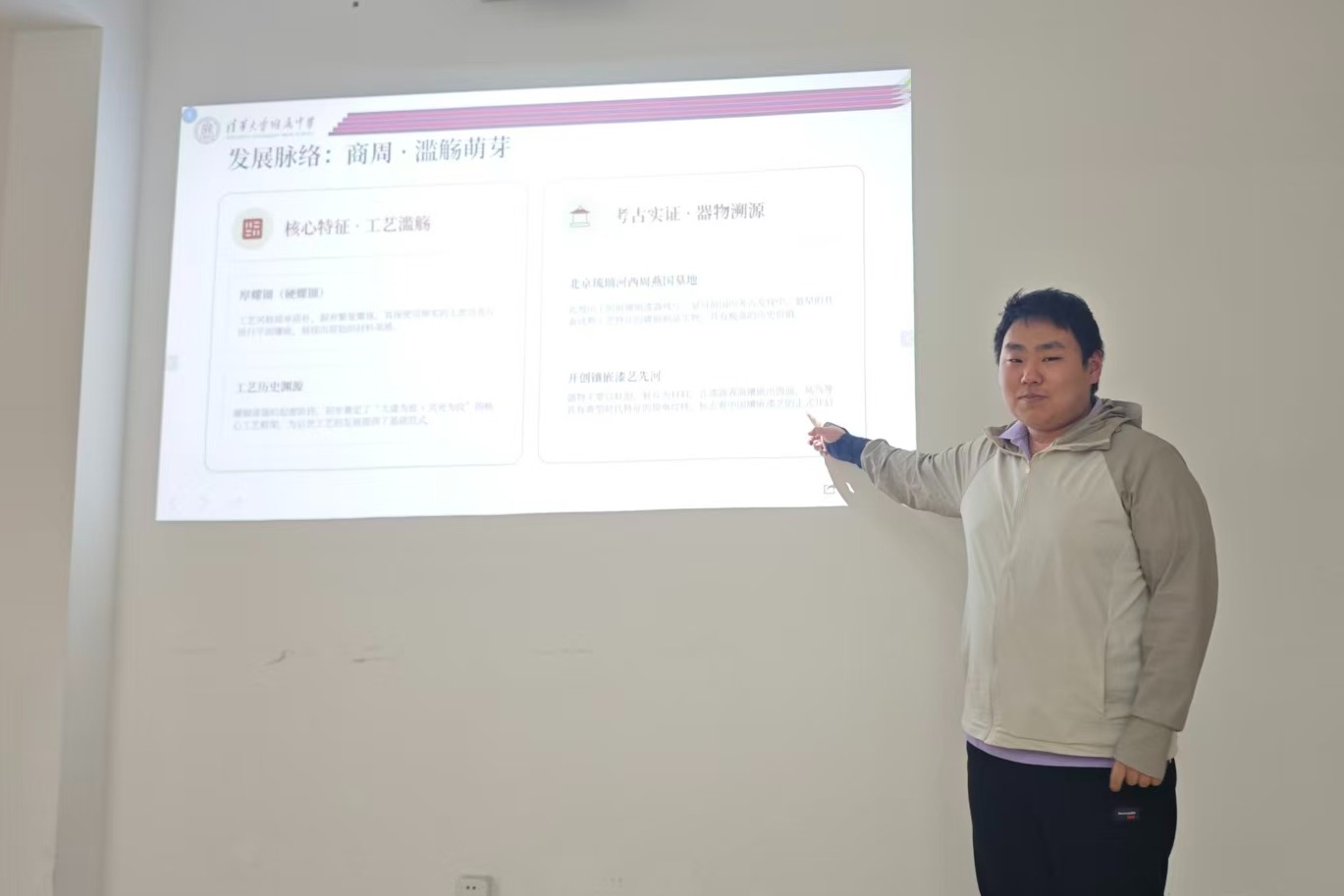 韩宁宇老师为同学们细致讲解了螺钿工艺的发展脉络、制作原理与艺术价值。从贝壳的选材打磨,到薄片的镶嵌拼接,再到成品的打磨抛光,每一个步骤都凝聚着古人的智慧与匠心。韩老师的讲解让同学们对这一国家级非遗技艺有了全面且深入的认识,也为后续的手工制作奠定了理论基础。