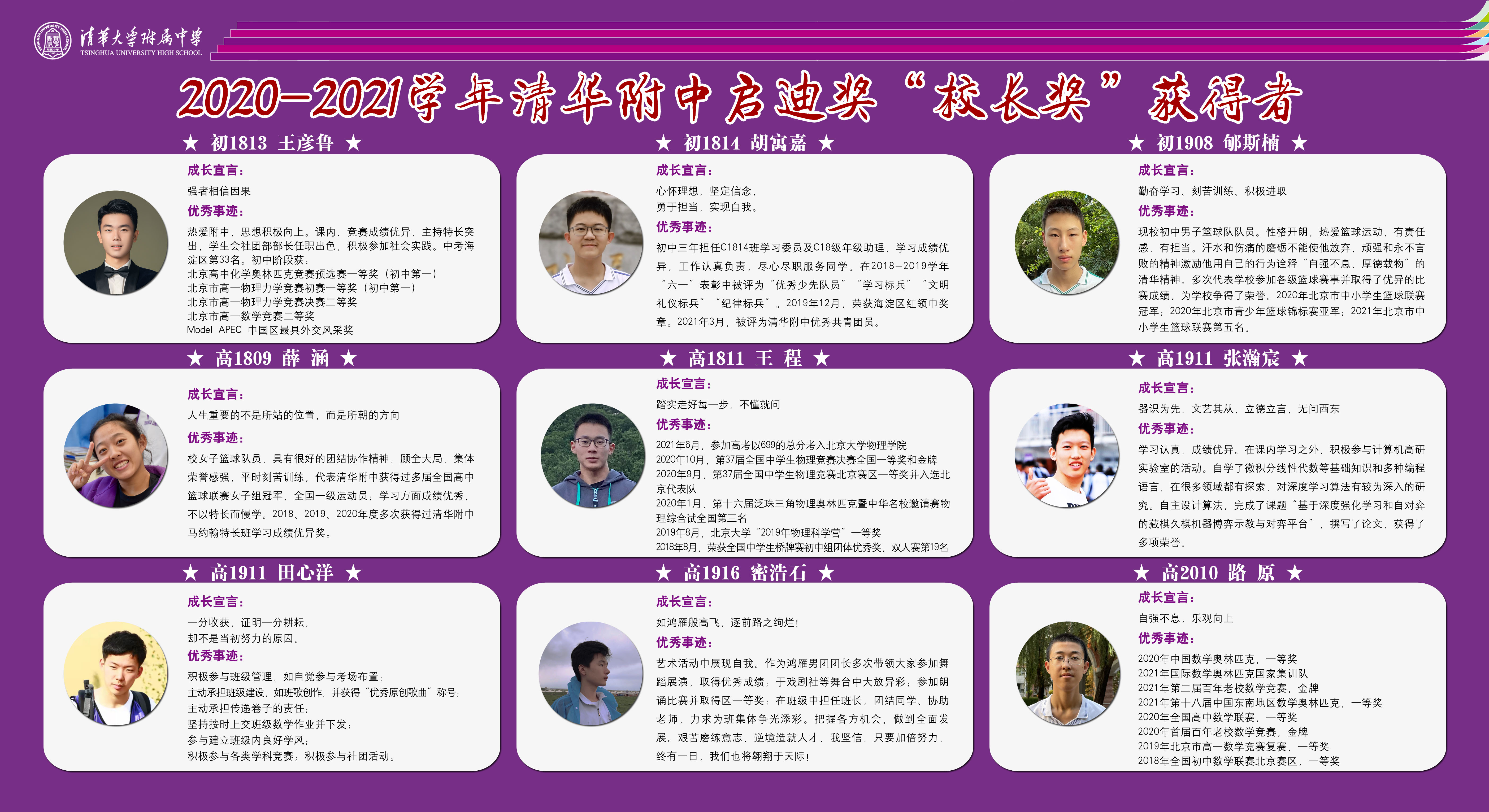 清华附中2020-2021学年“启迪奖”获奖者风采展示