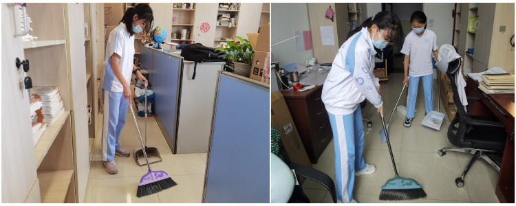 学生志愿者为老师打扫办公室
