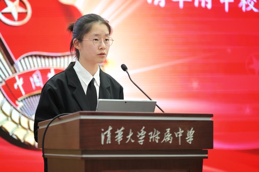 随后,学生会副主席汤一丹对清华附中学生会2021年的工作做了汇报和总结,概述了过去一年中组织的十大歌手、冰雪嘉年华、附中达人秀、线上学生节等活动和工作状况,并逐一介绍了体育部、外联部、学科部、文娱部、社团部、生活部的工作,表达了对新一年体制效率改进、更换新鲜血液的期待。