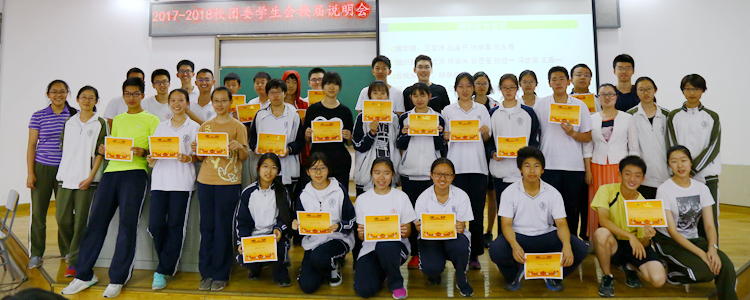 6月5日中午,清华附中校团委、学生会在B208召开2017-2018学年换届选举说明大会,并为本学期的优秀部员颁发证书。校团委书记任星阳,校团委、学生会各部门成员共100余人参加说明会。